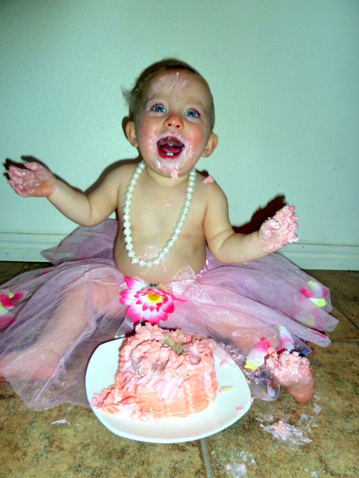 I waiting until today to let Gracie dive into her smash(birthday) cake, and I am so glad that I did. After her nap today, she was in much better spirits then last night. Jace was at preschool too, which helped me out a lot!