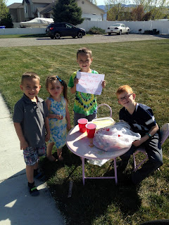 The kids have had a lemonade/kool-aid/cookie/otter pop/candy stand the last three days. Lots of friends have joined in on the fun too.
