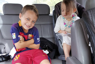 This kid! He wears his jersey under his church clothes and undresses in the van before we even make it home...